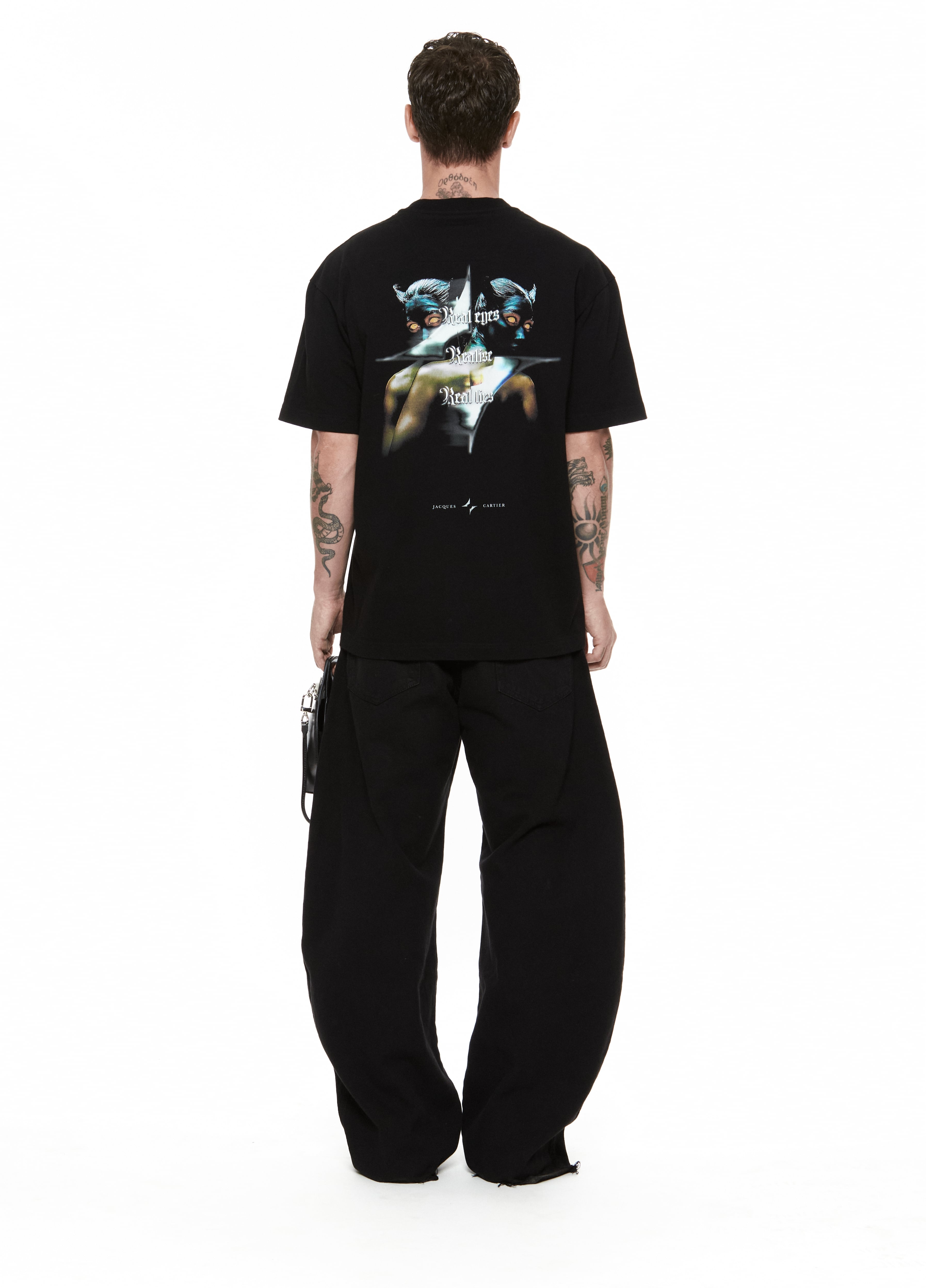 Black graphic tee shirt "Real Eyes"